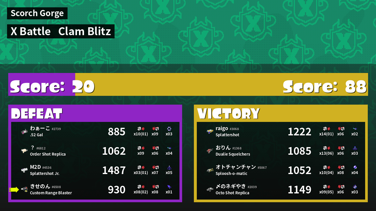 | Medals | #1 Splat Assister #1 Clam Stopper #1 Ground Traveler | ||