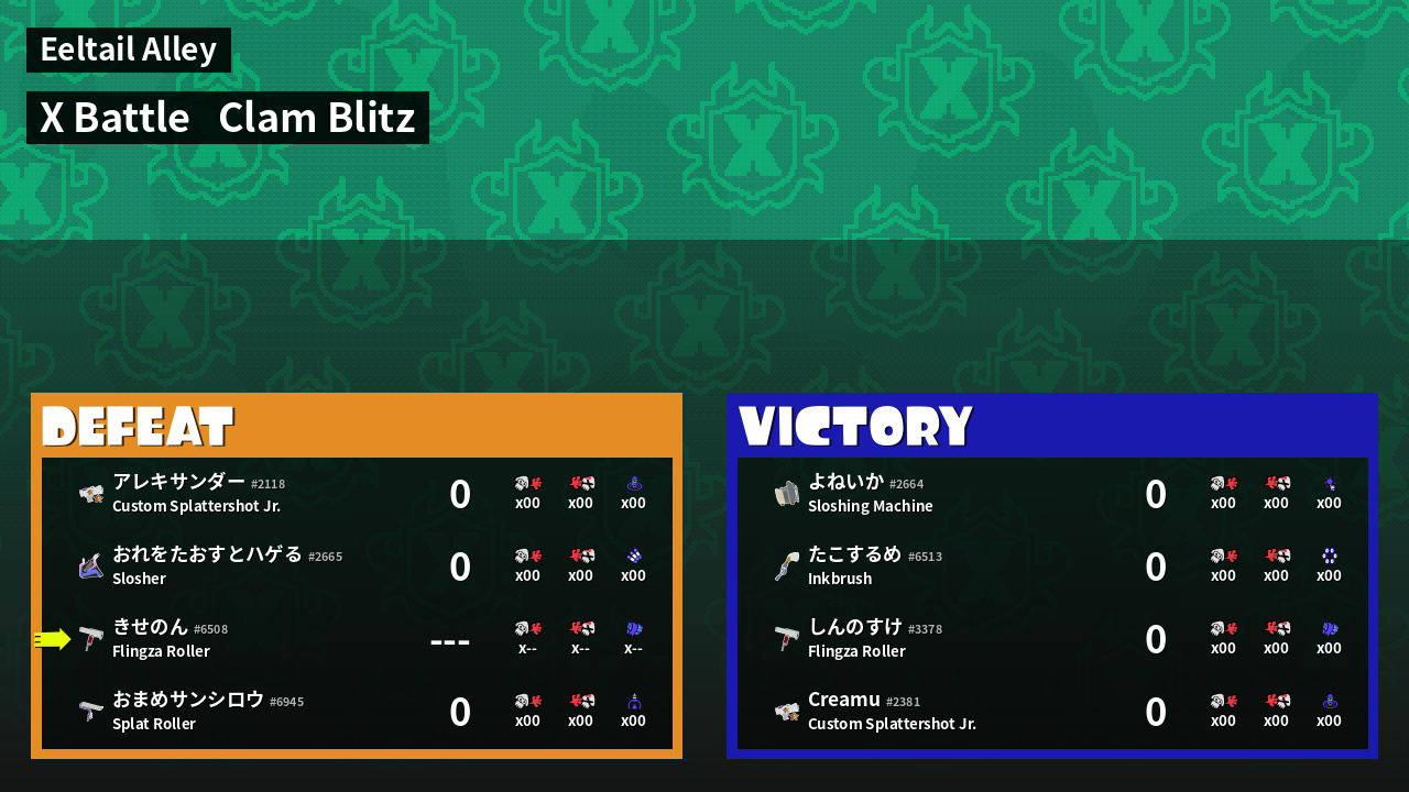 | Mode | Clam Blitz - X Battle | ||