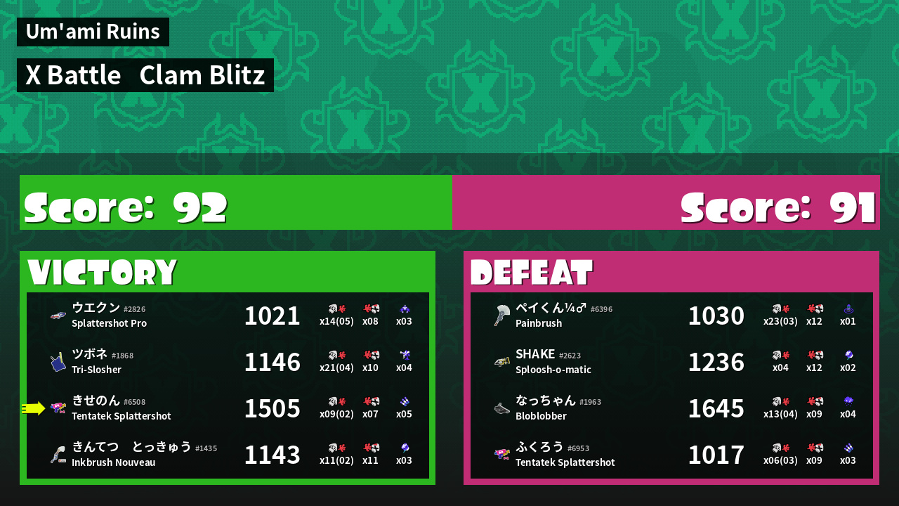 | Mode | Clam Blitz - X Battle | ||