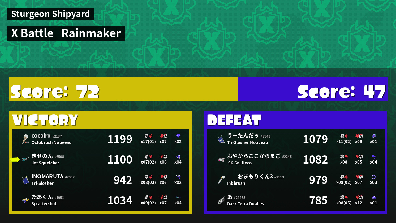 | Mode | Rainmaker - X Battle | ||