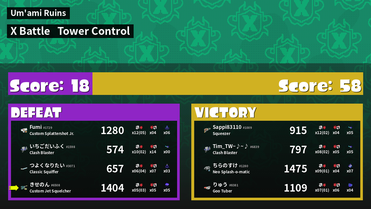 | Mode | Tower Control - X Battle | ||