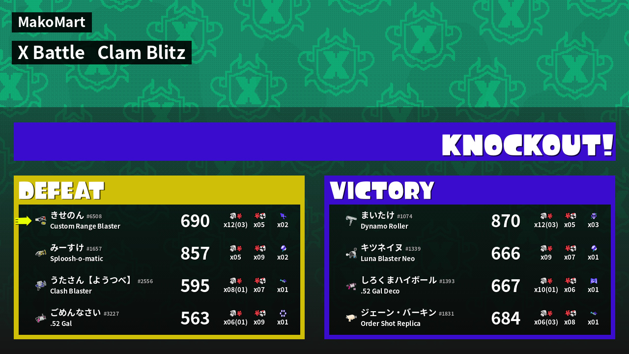 | Medals | #1 Overall Splatter #1 Clam Carrier #1 Enemy Splatter | ||