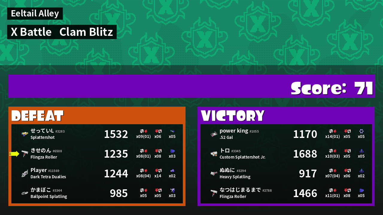 | Weapon | Flingza Roller ( Ink Mine / Tenta Missiles) | ||