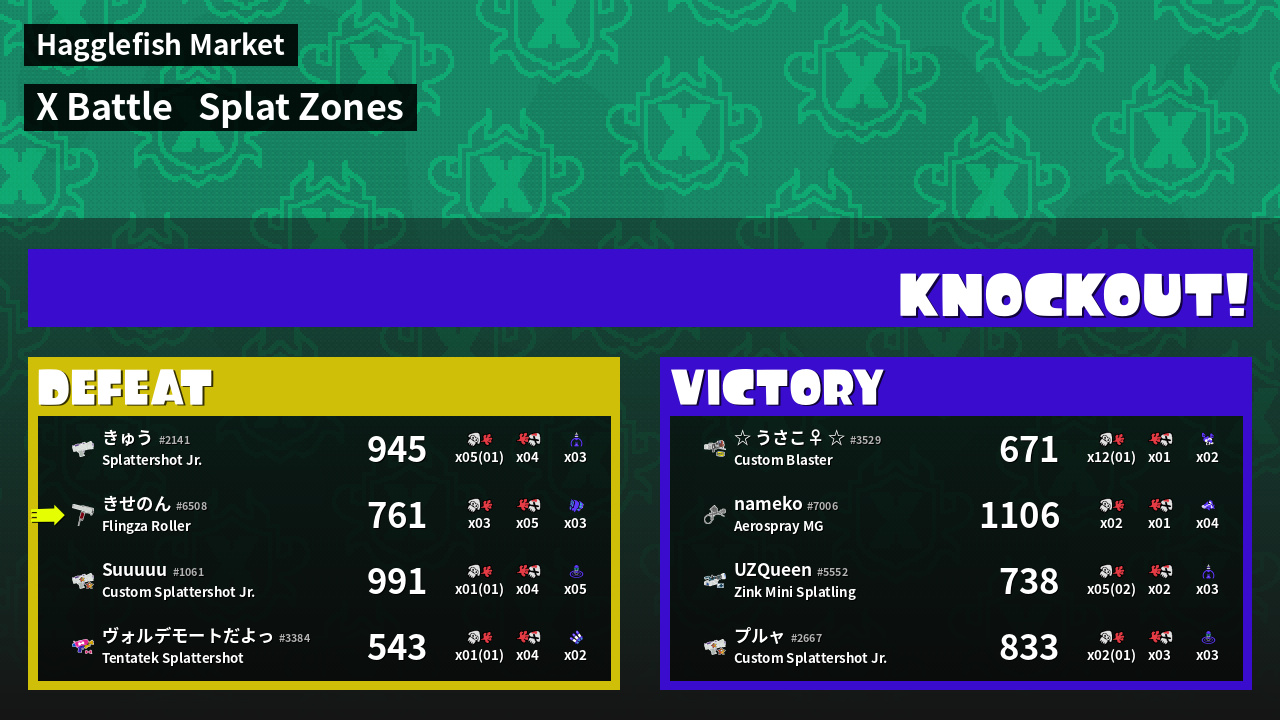 | Medals | #1 Splat Zone Guard #1 Super Jump Spot #1 Ground Traveler | ||