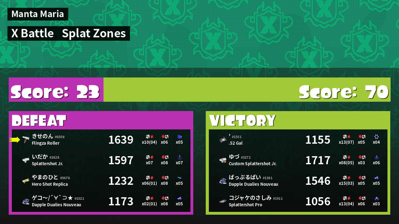 | Medals | #1 Overall Splatter #1 Splat Zone Guard #1 Turf Inker | ||