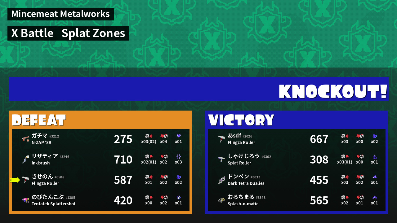 | Weapon | Flingza Roller ( Ink Mine / Tenta Missiles) | ||