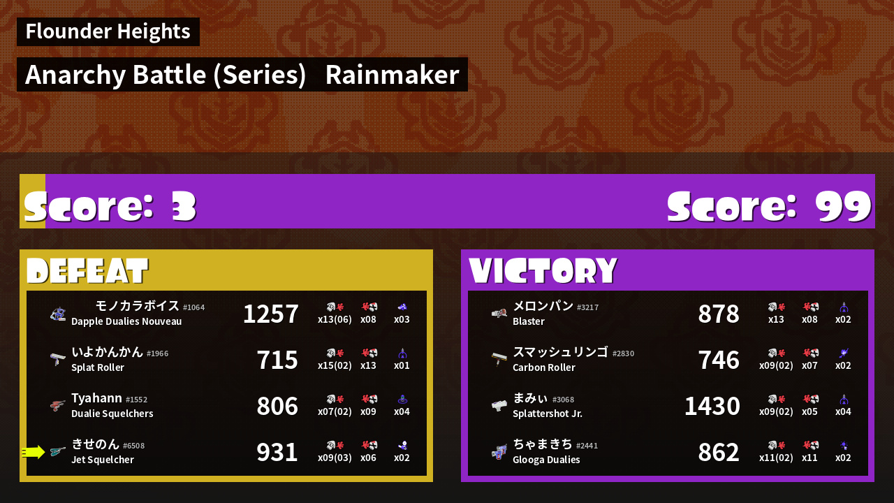 | Mode | Rainmaker - Anarchy Battle (Series) | ||