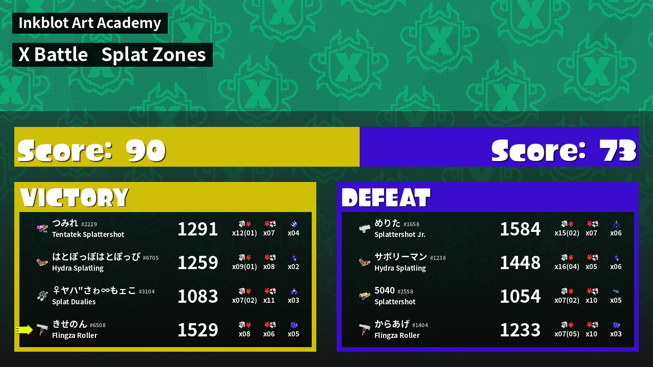 | Mode | Splat Zones - X Battle | ||