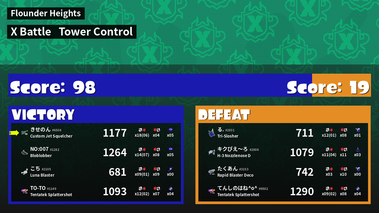 | Mode | Tower Control - X Battle | ||
