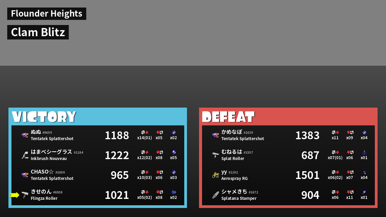 | Weapon | Flingza Roller ( Ink Mine / Tenta Missiles) | ||