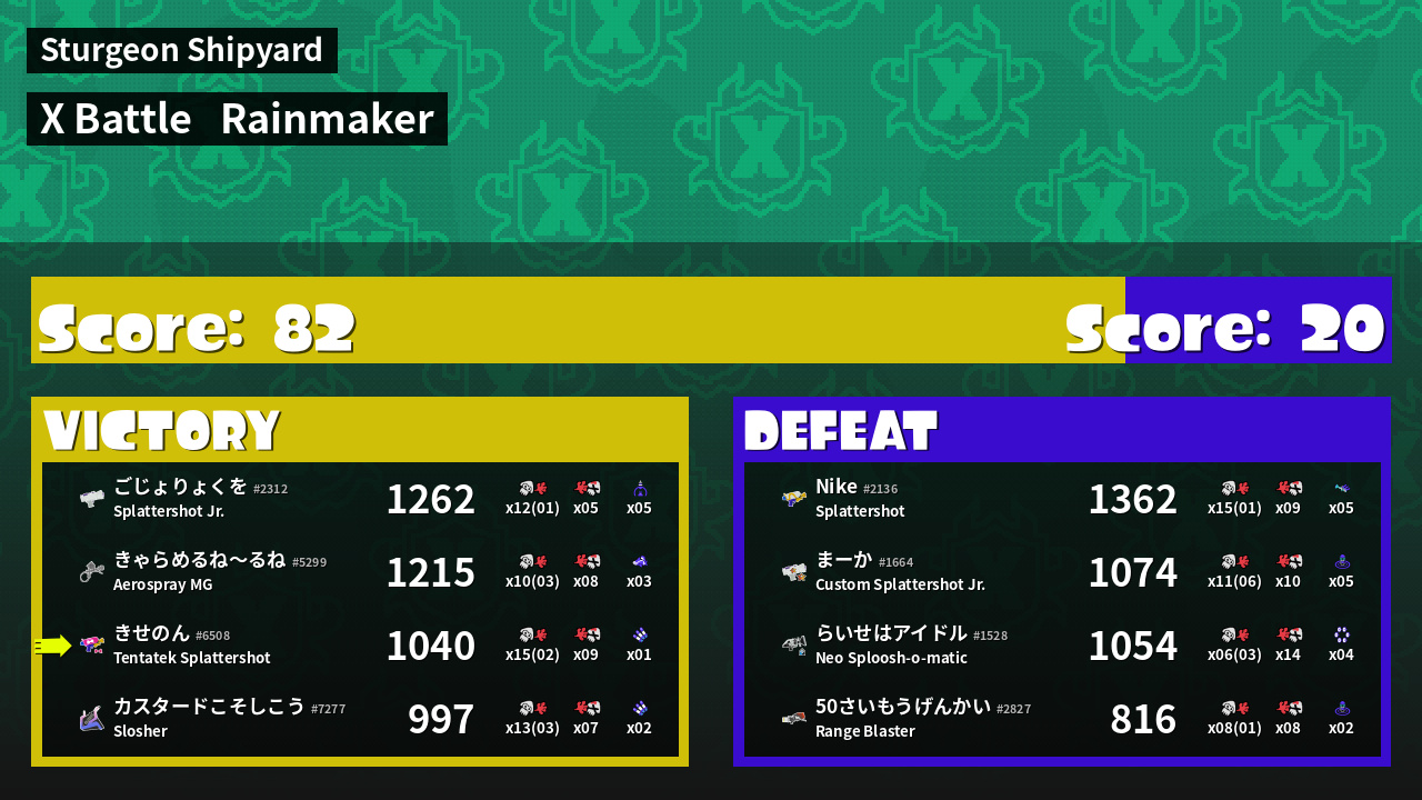 | Medals | #1 Overall Splatter #1 Enemy Splatter #2 Score Booster | ||