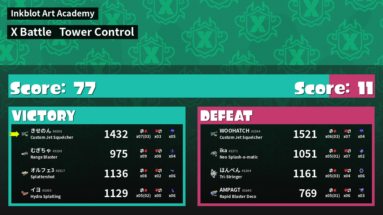 | Mode | Tower Control - X Battle | ||