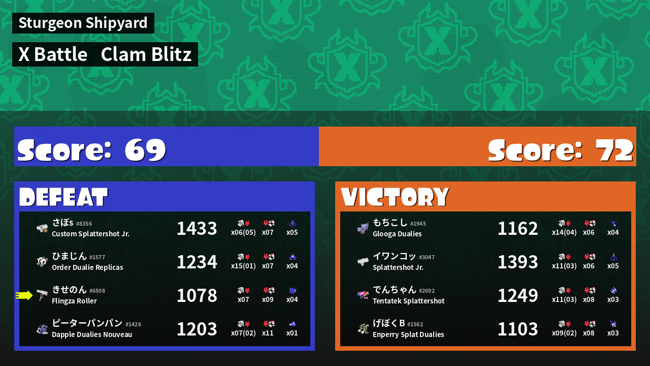 | Mode | Clam Blitz - X Battle | ||
