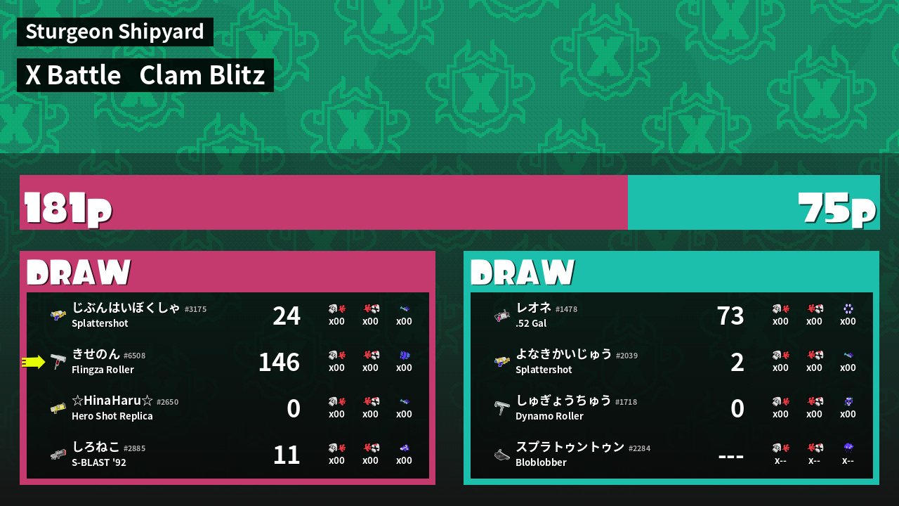 | Mode | Clam Blitz - X Battle | ||