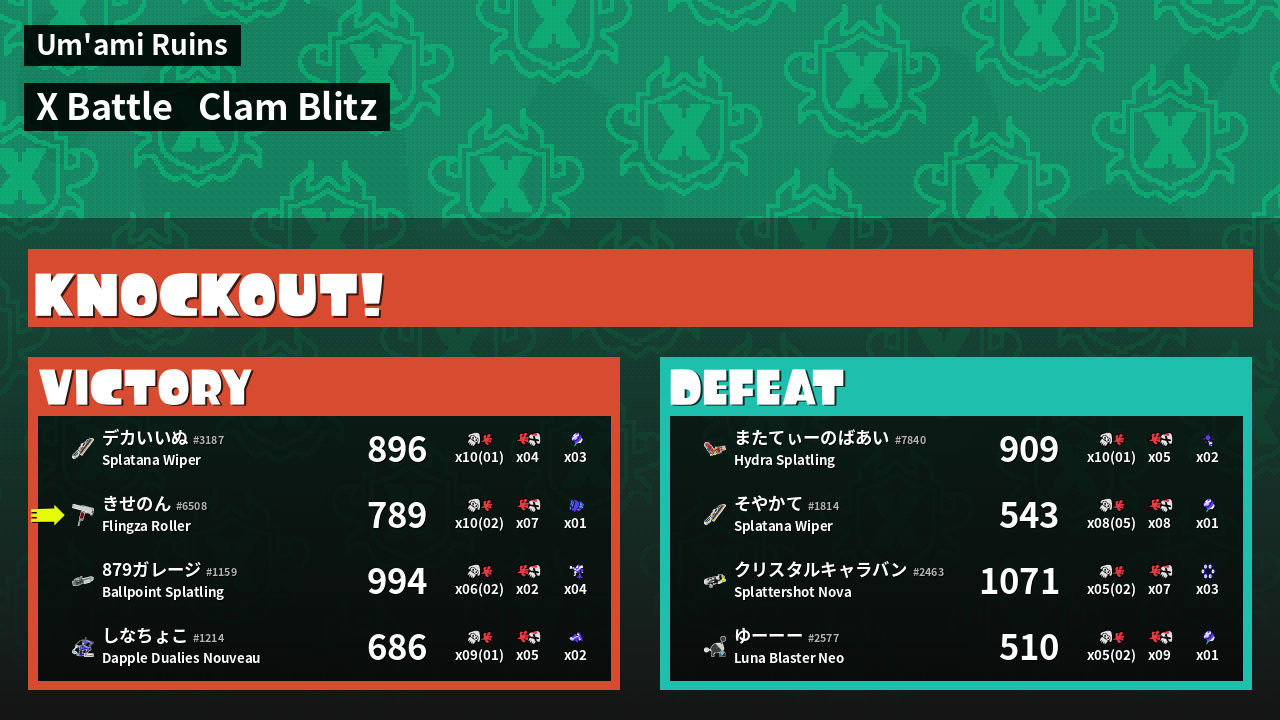 | Medals | #1 Overall Splatter #1 Splat Assister #1 Clam Stopper | ||