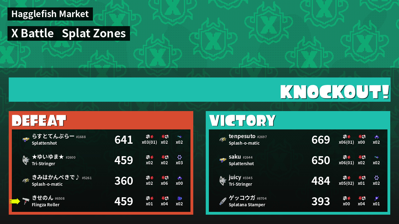 | Weapon | Flingza Roller ( Ink Mine / Tenta Missiles) | ||