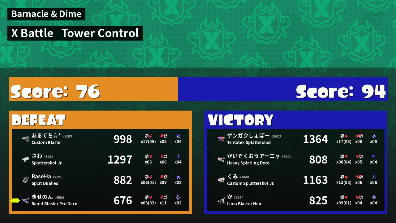 | Mode | Tower Control - X Battle | ||
