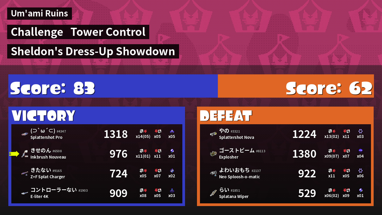 | Medals | #1 Enemy Splatter #1 Ground Traveler #1 Ultra Stamp User | ||
