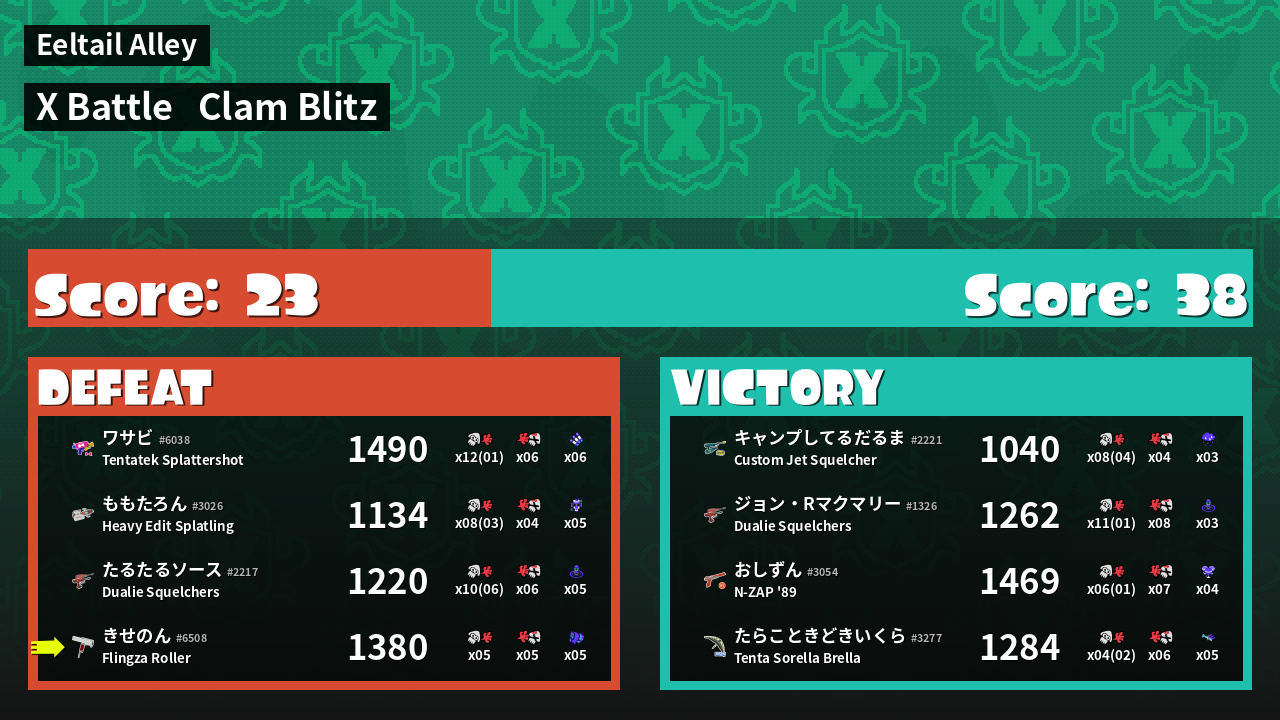 | Mode | Clam Blitz - X Battle | ||