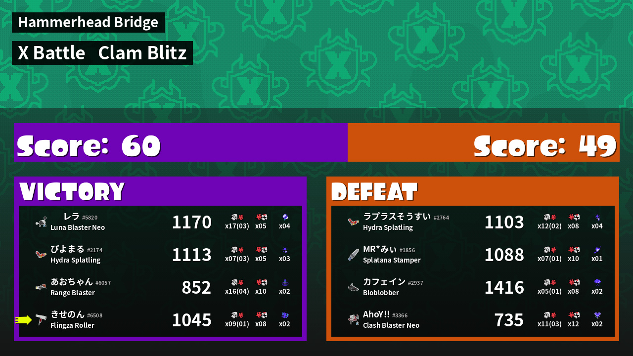 | Medals | #1 Clam Stopper #1 Ground Traveler #1 Tenta Missiles User | ||