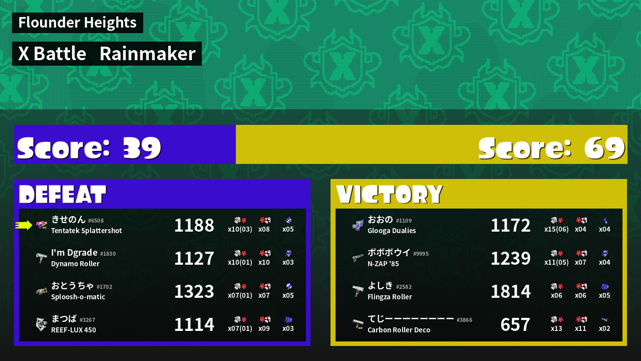 | Mode | Rainmaker - X Battle | ||