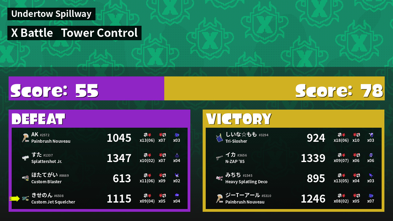 | Mode | Tower Control - X Battle | ||
