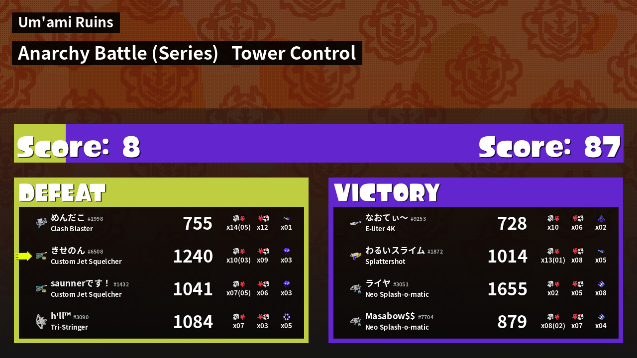 | Mode | Tower Control - Anarchy Battle (Series) | ||