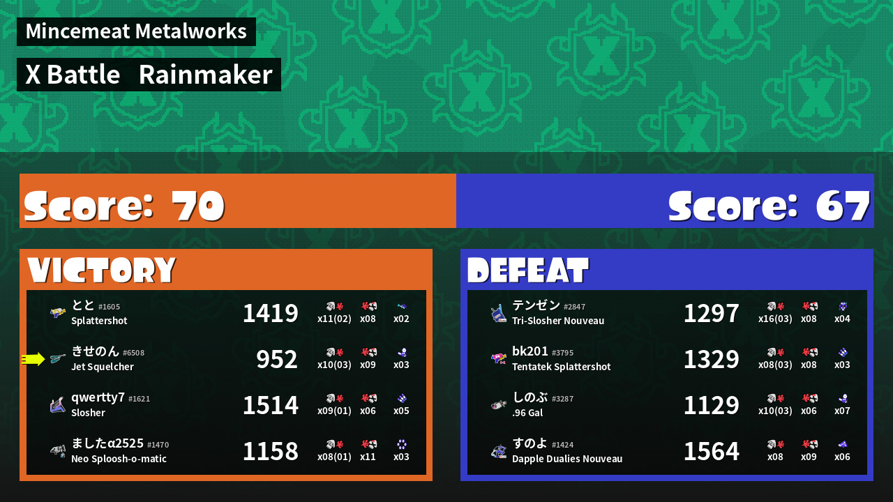 | Medals | #1 Super Jump Spot #1 Splat Assister #2 Overall Splatter | ||
