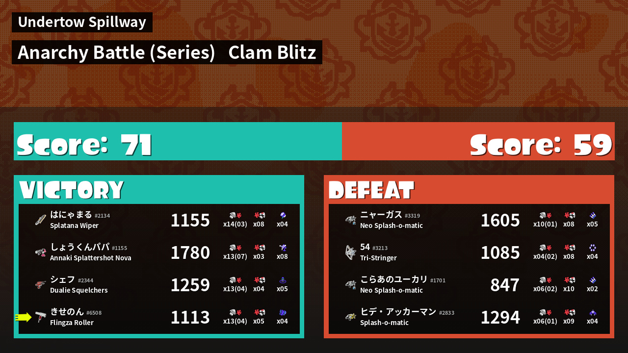 | Mode | Clam Blitz - Anarchy Battle (Series) | ||