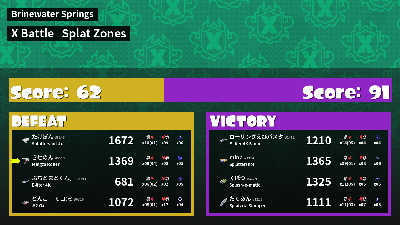 | Medals | #1 Splat Assister #1 Tenta Missiles User #2 Overall Splatter | ||
