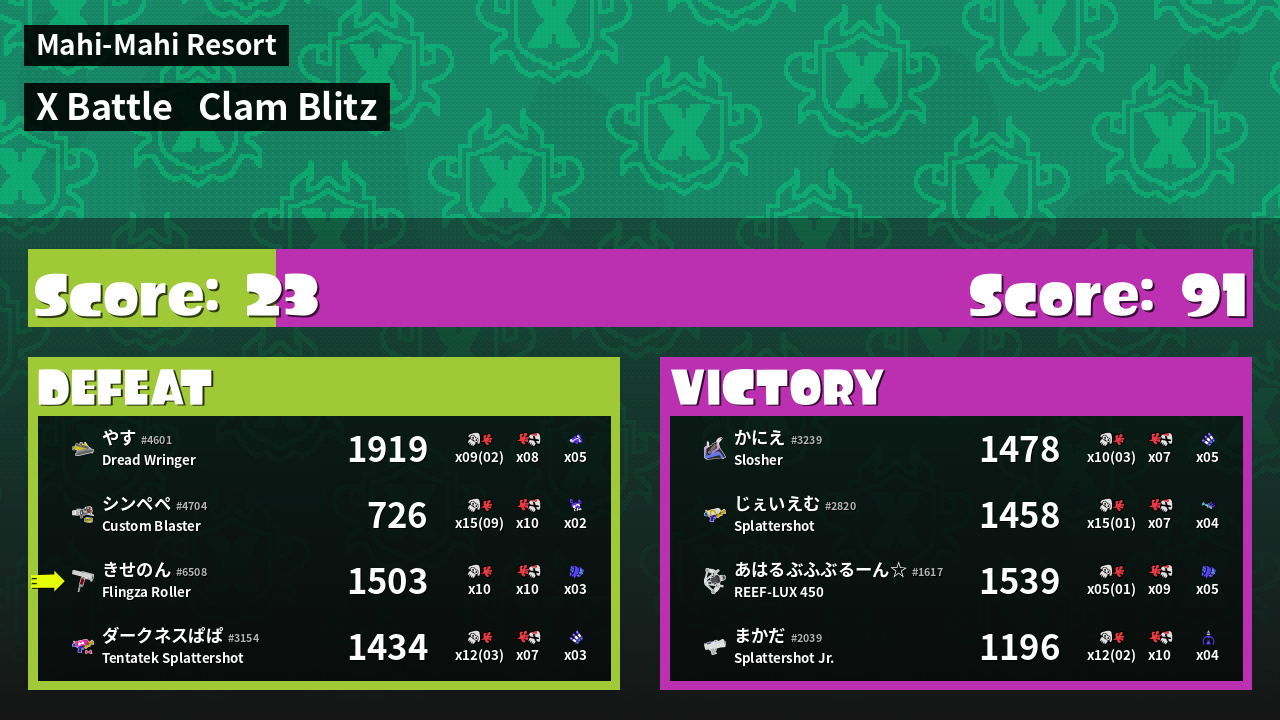 | Mode | Clam Blitz - X Battle | ||