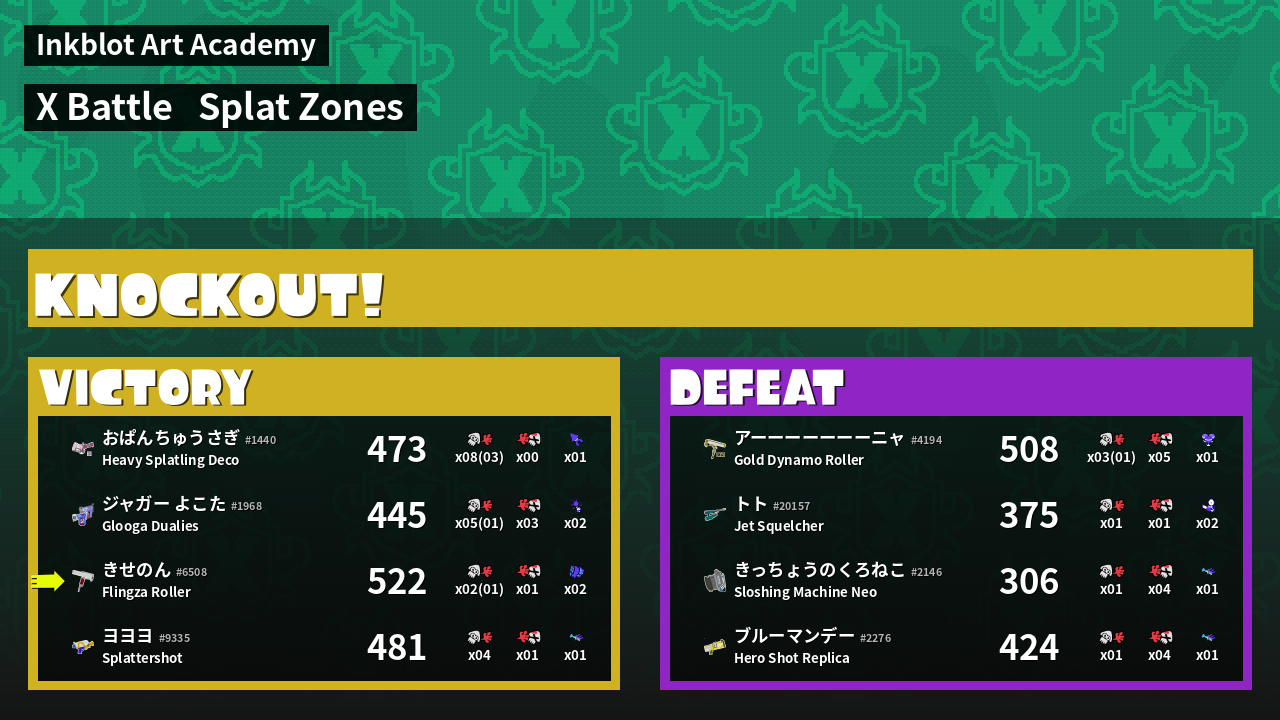 | Mode | Splat Zones - X Battle | ||