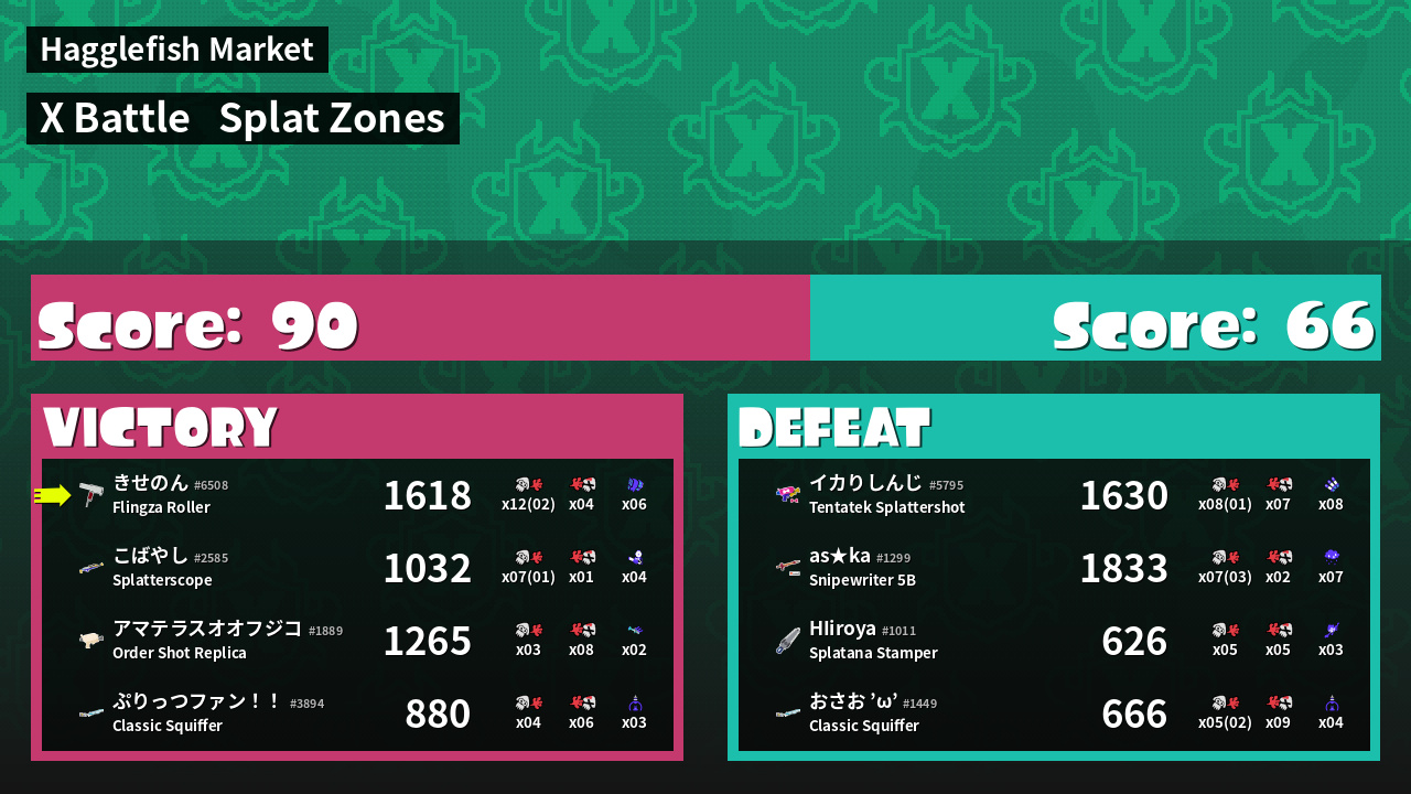 | Mode | Splat Zones - X Battle | ||