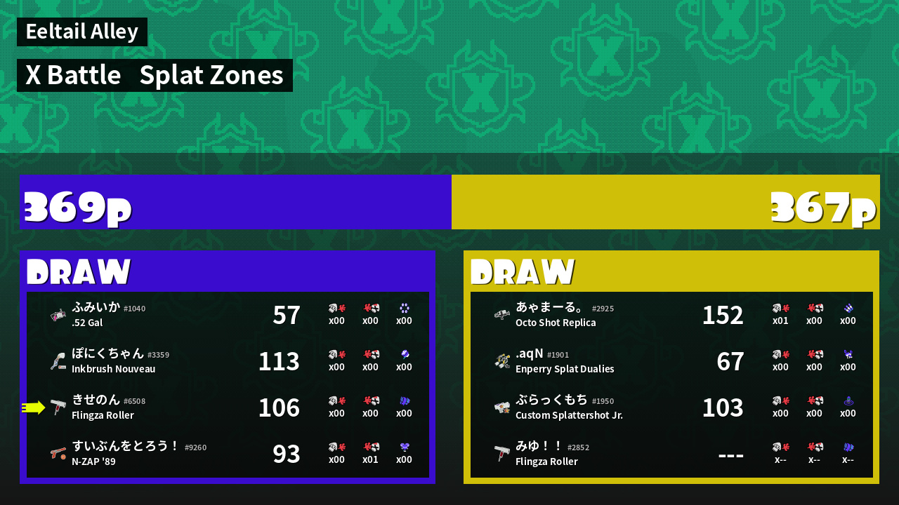 | Mode | Splat Zones - X Battle | ||