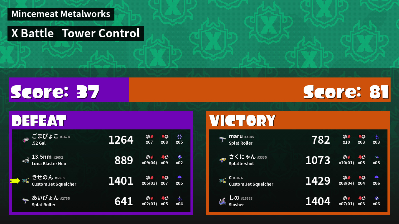 | Mode | Tower Control - X Battle | ||