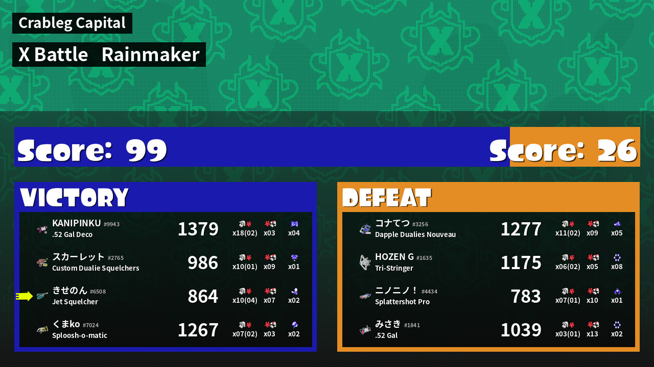 | Medals | #1 Splat Assister #1 Ink Vac User #2 Overall Splatter | ||