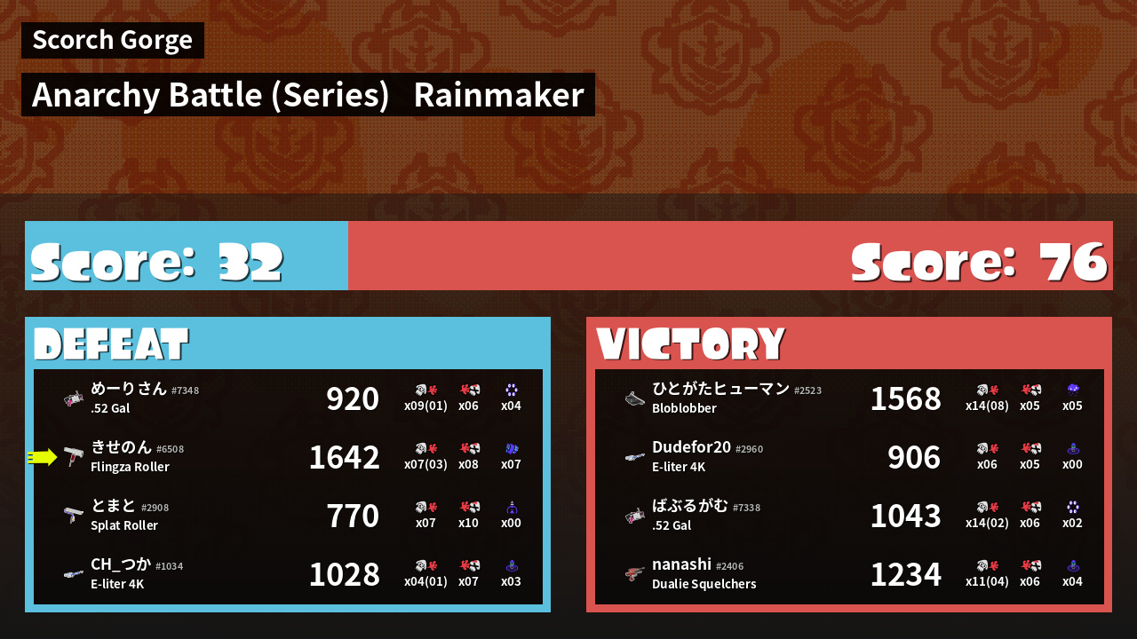 | Medals | #1 Turf Inker #1 Splat Assister #1 Tenta Missiles User | ||