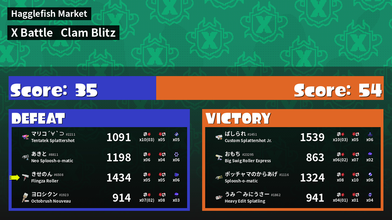 | Mode | Clam Blitz - X Battle | ||