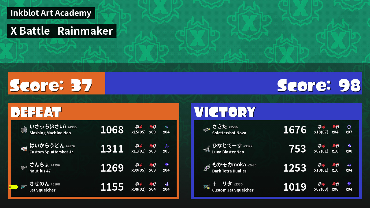 | Mode | Rainmaker - X Battle | ||