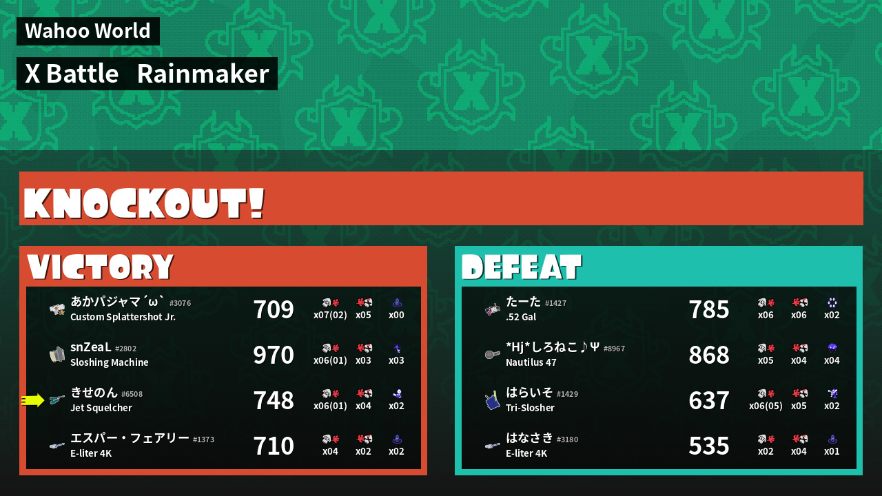 | Medals | #1 Enemy Splatter #1 Rainmaker Stopper #2 Overall Splatter | ||