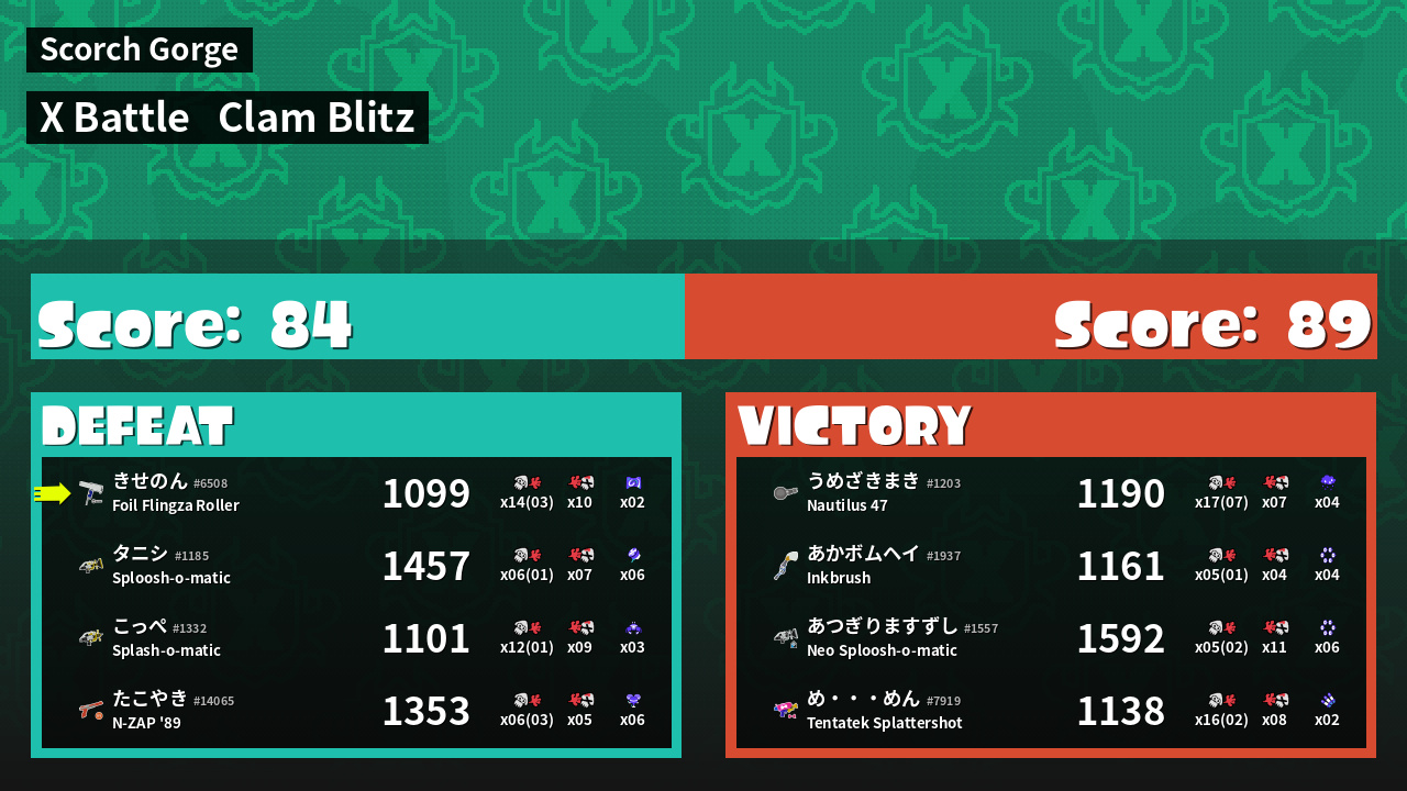 | Mode | Clam Blitz - X Battle | ||
