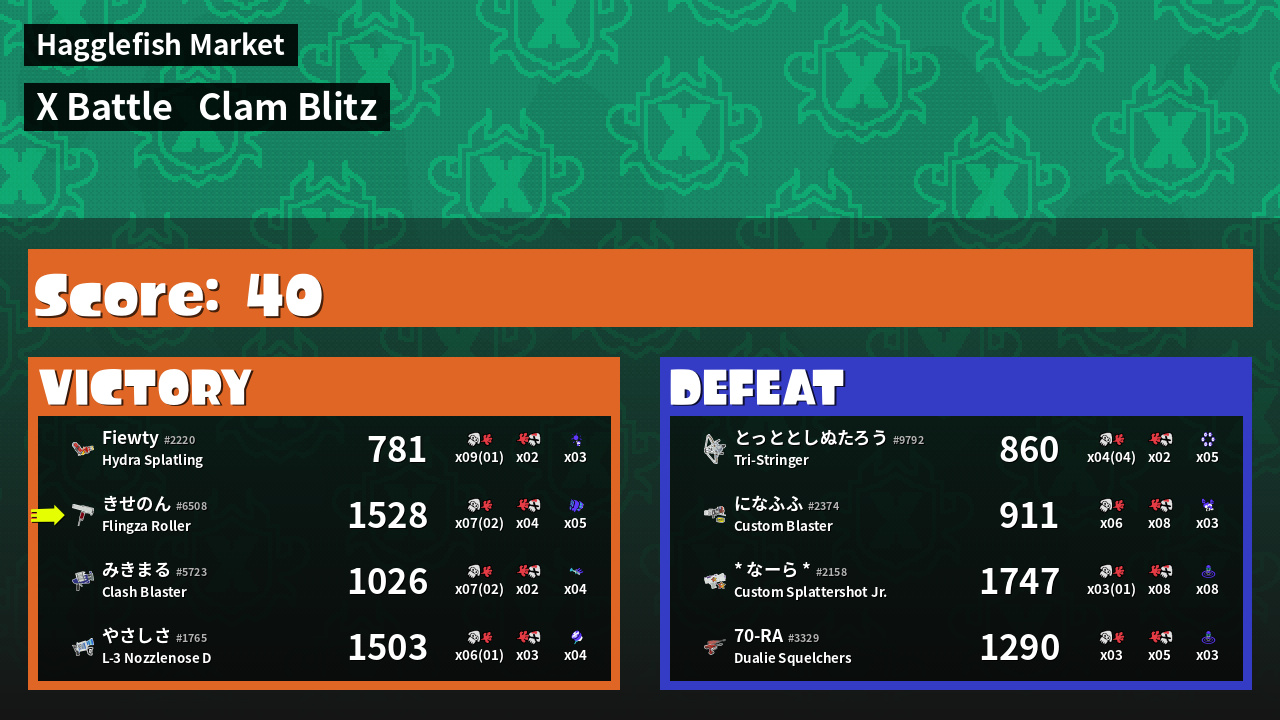 | Mode | Clam Blitz - X Battle | ||