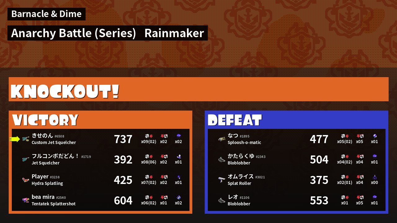 | Medals | #1 Overall Splatter #1 Score Booster #1 Turf Inker | ||