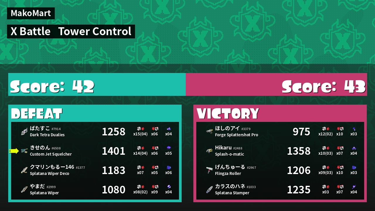 | Mode | Tower Control - X Battle | ||