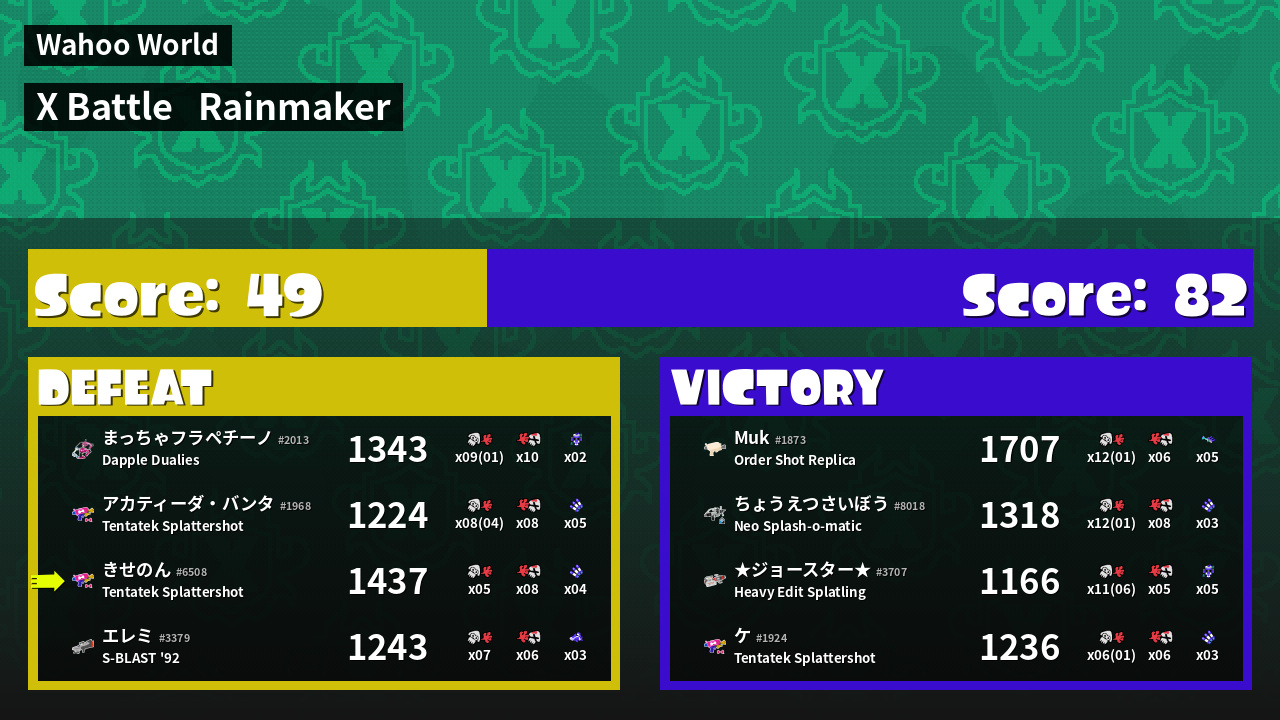| Weapon | Tentatek Splattershot ( Splat Bomb / Triple Inkstrike) | ||