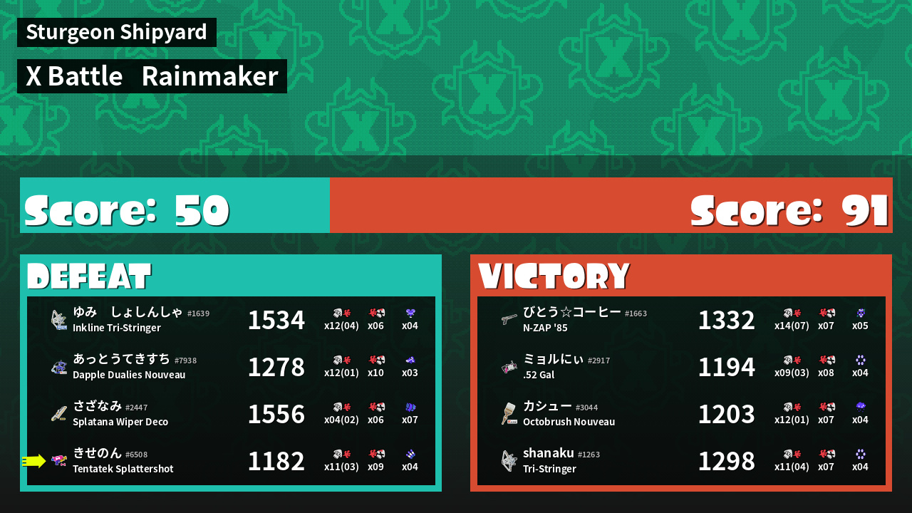 | Mode | Rainmaker - X Battle | ||