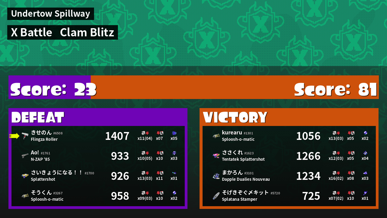 | Weapon | Flingza Roller ( Ink Mine / Tenta Missiles) | ||