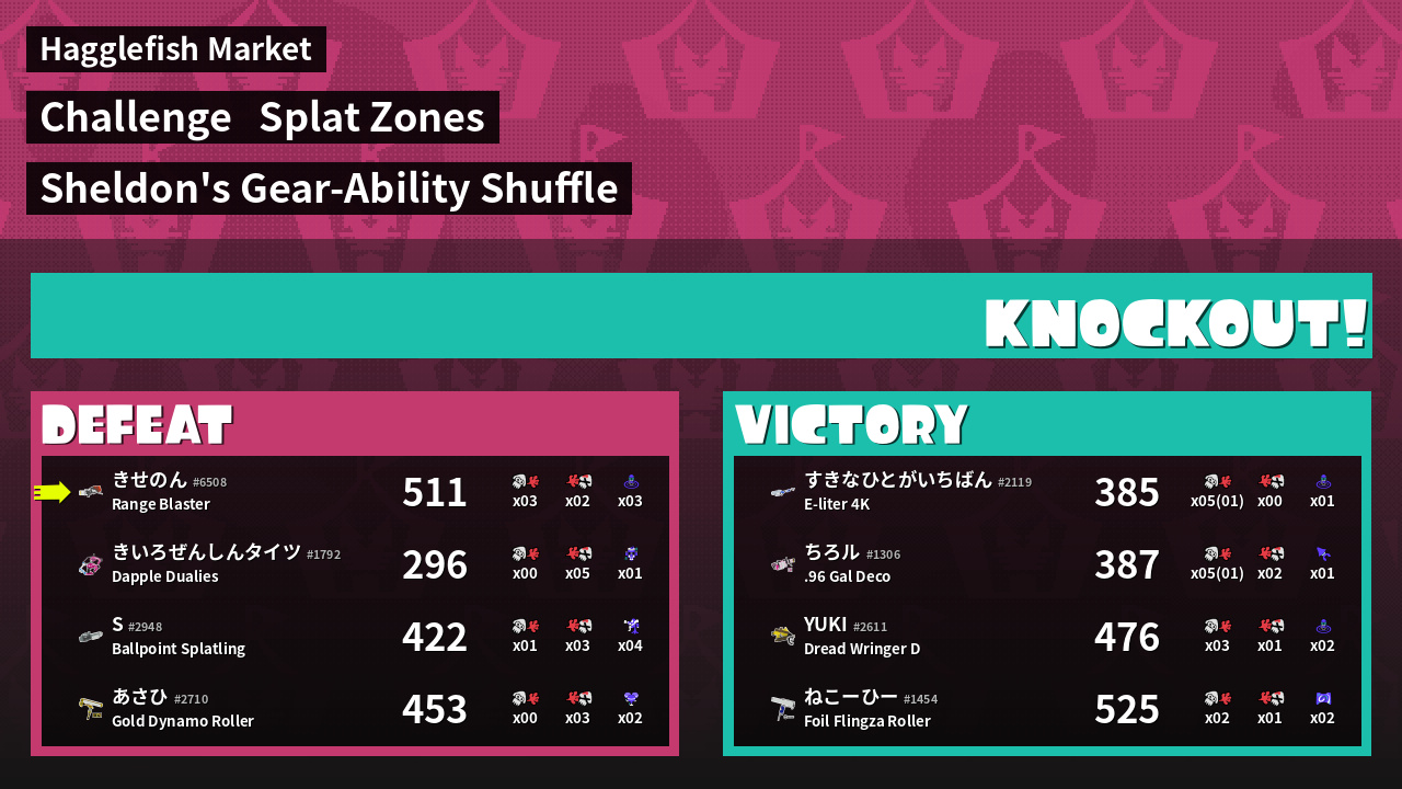 | Medals | #1 Overall Splatter #1 Splat Zone Inker #1 Turf Inker | ||