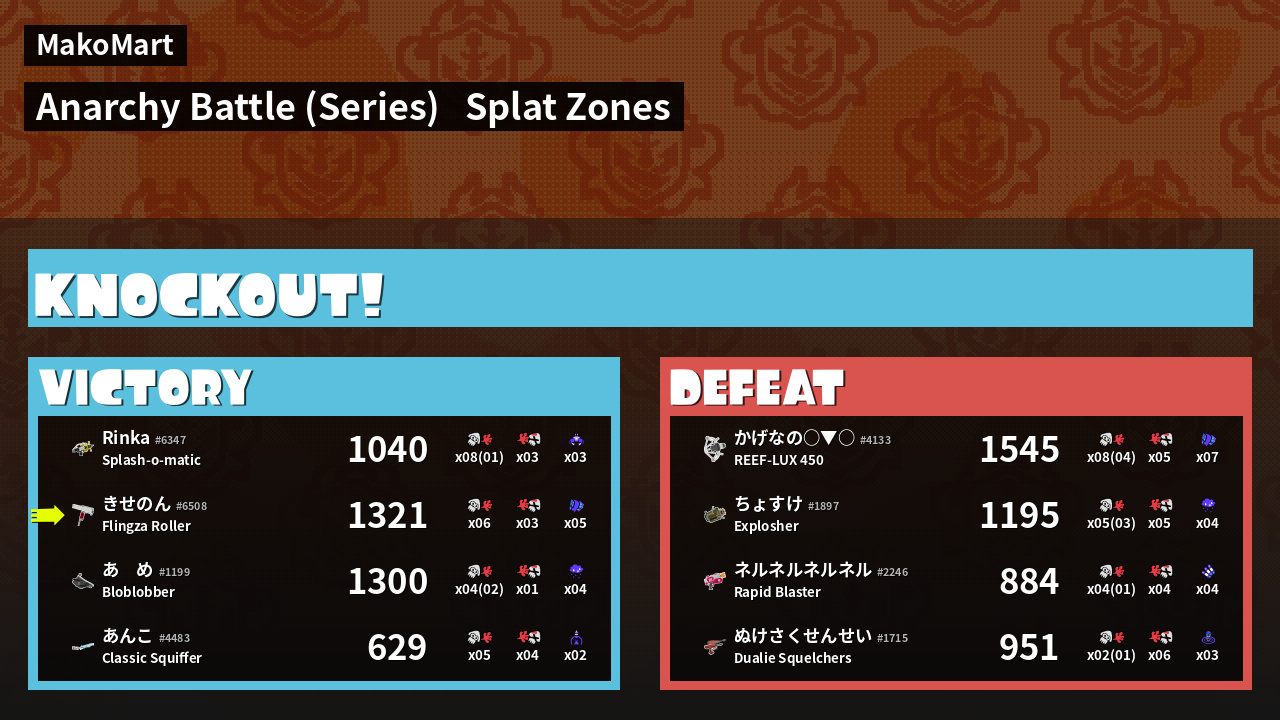 | Mode | Splat Zones - Anarchy Battle (Series) | ||