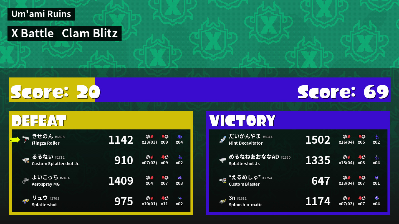 | Weapon | Flingza Roller ( Ink Mine / Tenta Missiles) | ||